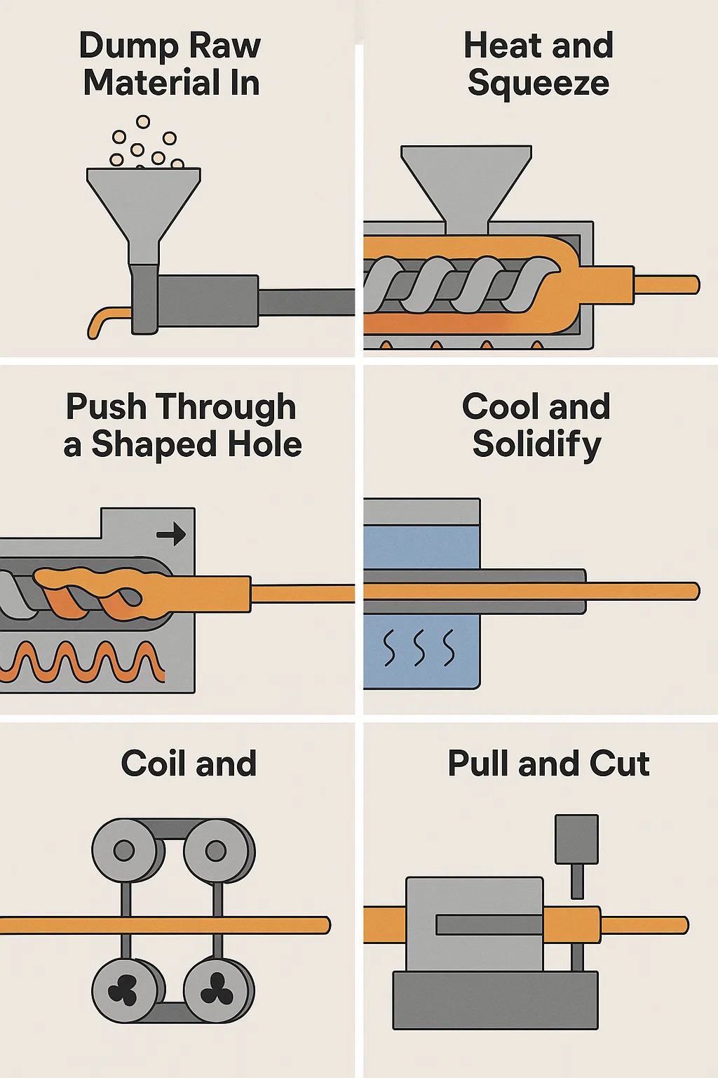 Así es como un máquina extrusora funciona, desglosado simplemente: